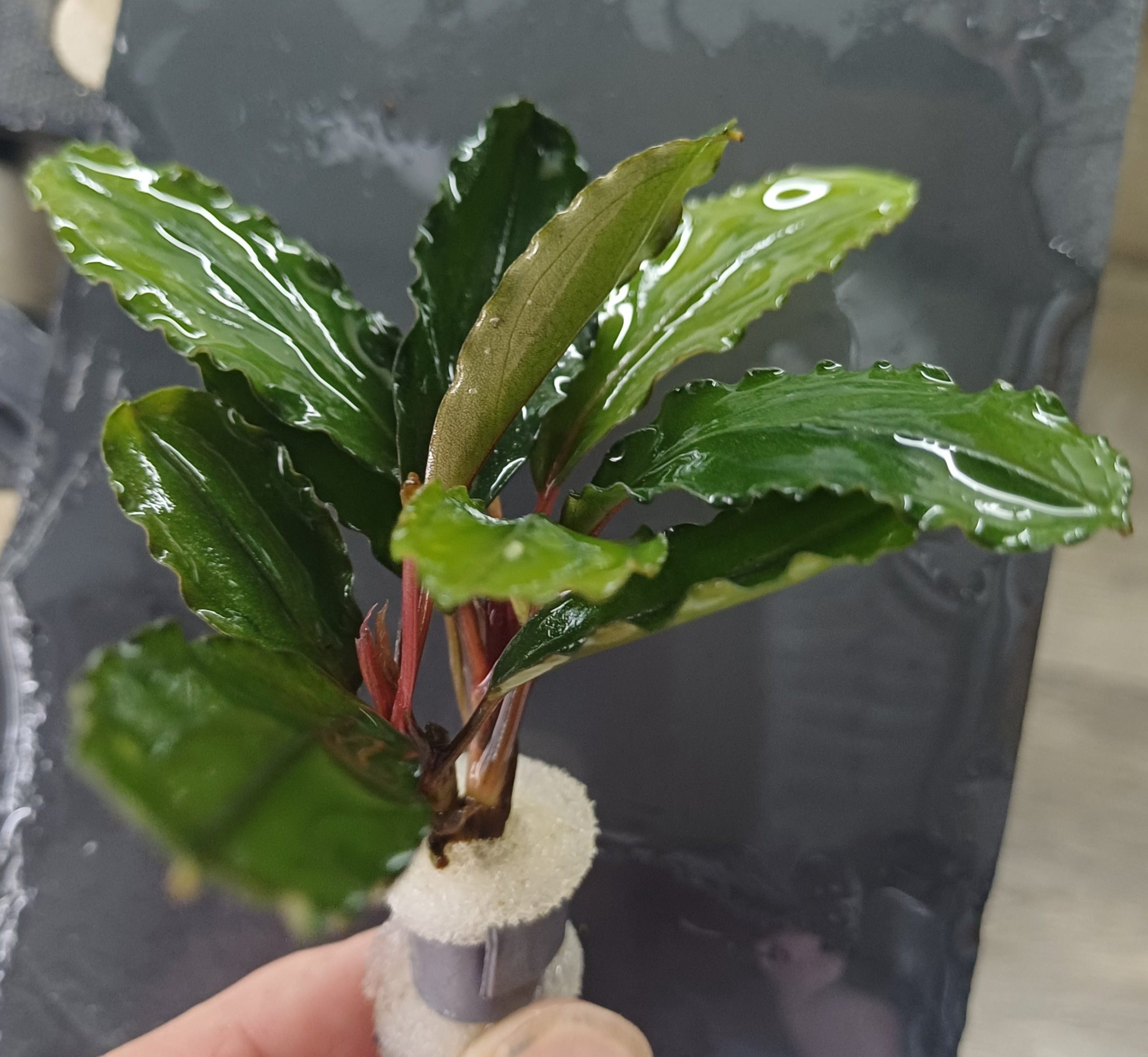 Like other Bucephalandra species, it grows primarily as an epiphyte, attaching to rocks, driftwood, or other hardscape elements. The rhizome should never be buried in substrate, as this can cause rot. The red-colored rhizomes resemble those of the Red Bucephalandra variety, adding another layer of visual interest to your aquascape. With very slow growth and low-light requirements, it is ideal for low-tech aquariums or aquascapers seeking a low-maintenance yet elegant plant.